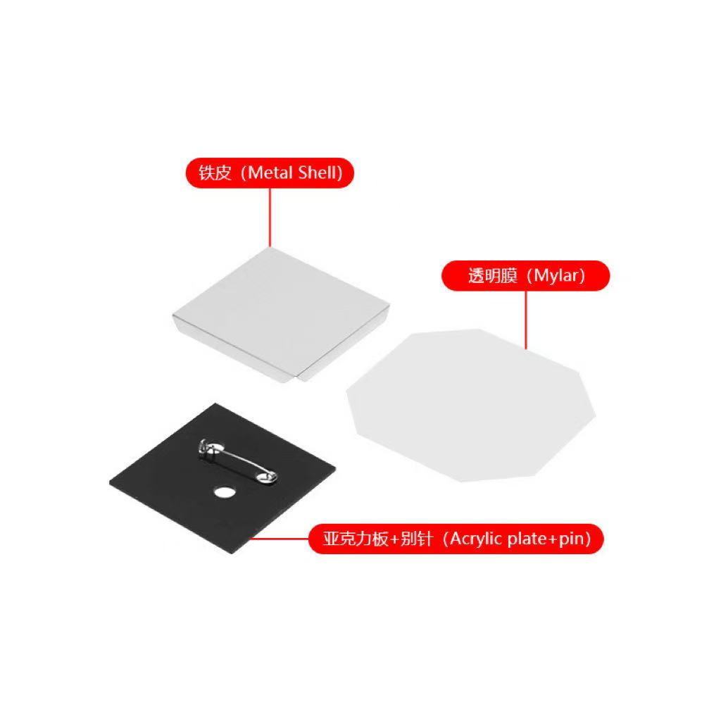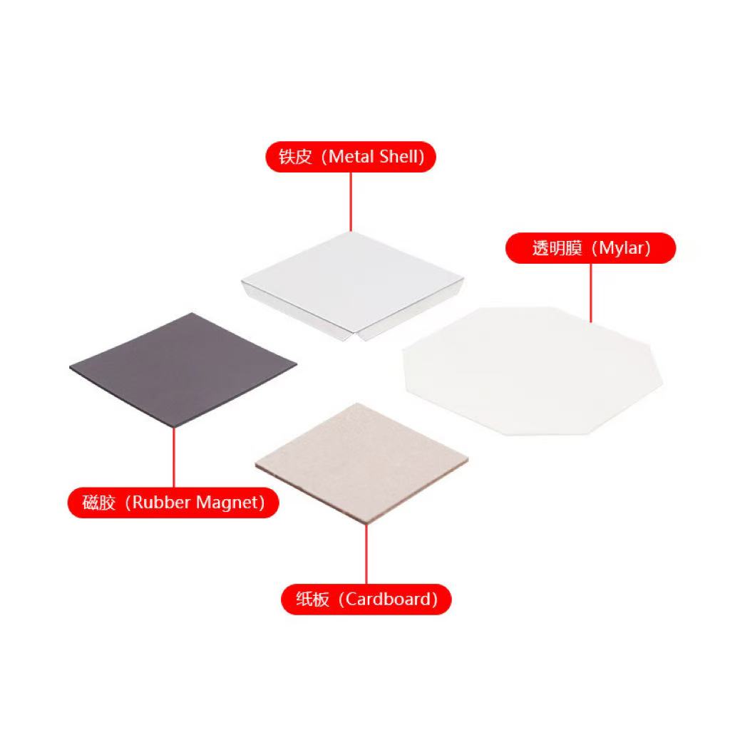 Next to the machines, your supplies. You chose the 100-pack (or was it the 1,000-pack?). Either way, you've got stacks of metal backings, PVC boards, Mylar film, and magnet sheets. Everything you need to create your first batch of custom photo magnets.